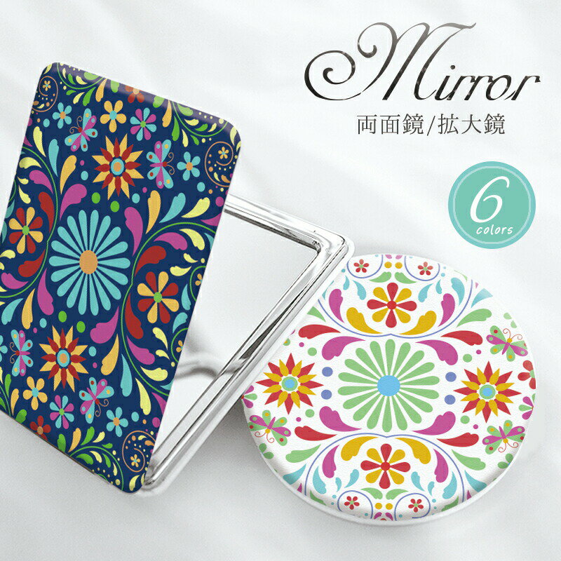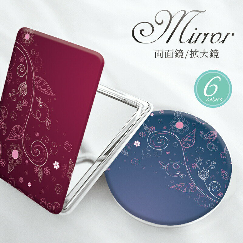 《送料無料》ミラー 花柄 両面鏡 拡大鏡 手鏡 コンパクト 鏡 化粧直し かわいい レディース おしゃれ 女性 携帯 収納 収納ミラー カバン ポーチ